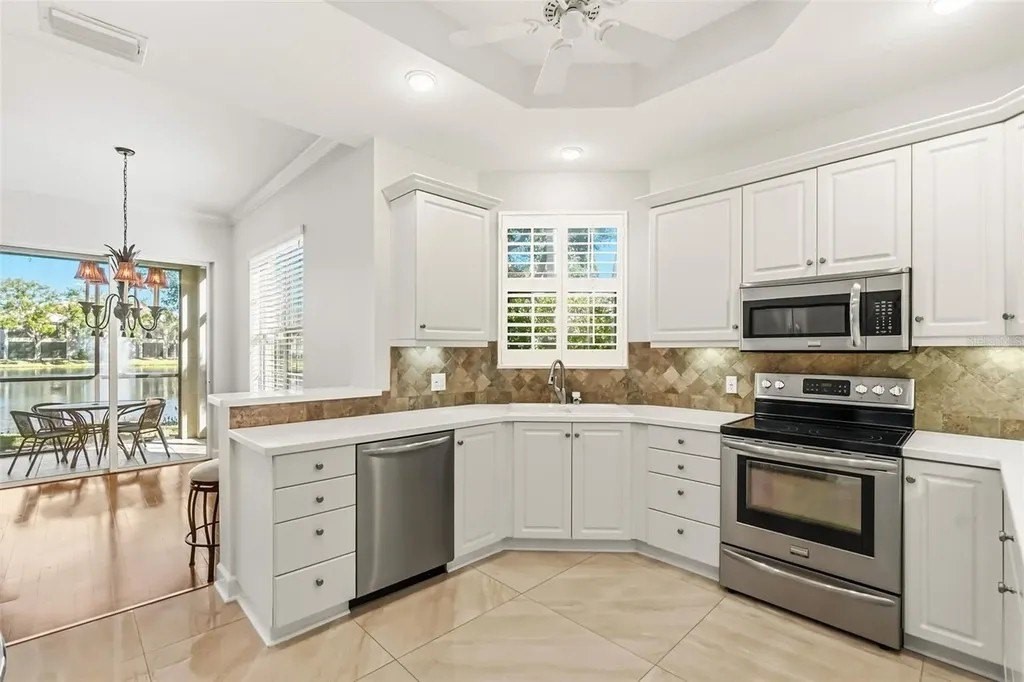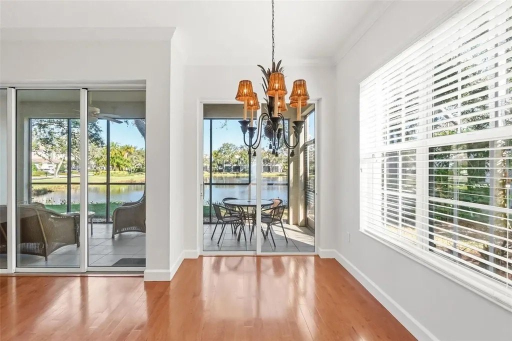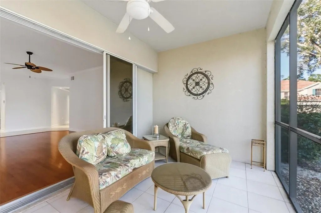 Welcome to Botanica at Palmer Ranch, a charming and exclusive gated enclave of just 172 private residences, where refined design meets a truly maintenance-free lifestyle. This residence features the highly sought-after Jasmine floorplan, the most desirable layout in the community, offering 1798 heated square feet and the comfort and functionality of a single-family home. Ideally positioned on the ground floor for effortless living, this spacious condo is complemented by a coveted two-car garage, a rare and valuable feature. Inside, fresh paint enhances the bright, open feel, while wood flooring and crisp porcelain tile add warmth and timeless appeal throughout the living spaces. The thoughtfully designed layout flows seamlessly for both everyday living and entertaining, and the charming terrace overlooking a serene lake provides a peaceful outdoor retreat-perfect for morning coffee or unwinding at the end of the day. Botanica is designed to enrich both lifestyle and wellness, offering residents an exceptional collection of amenities. Enjoy two heated resort-style pools, a nicely equipped fitness center, and a beautifully appointed social hall complete with a catering kitchen and serving bar-ideal for gatherings and community events. Outdoor sun decks feature grilling stations and inviting seating areas for entertaining or relaxed conversation, all set amid lush, tropical landscaping. This completely maintenance-free community includes manicured grounds, building maintenance, pest control, building insurance, and cable TV, allowing residents to focus on enjoying life rather than managing it. Conveniently located in Palmer Ranch near shopping, dining, trails, and world-famous beaches, this exceptional residence offers space, ease, and a true sense of community-an outstanding opportunity to enjoy the best of Sarasota living.